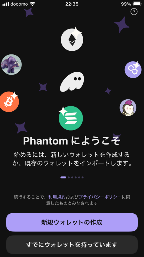→アプリを起動すると、「Phantom にようこそ」という画面が表示されます。