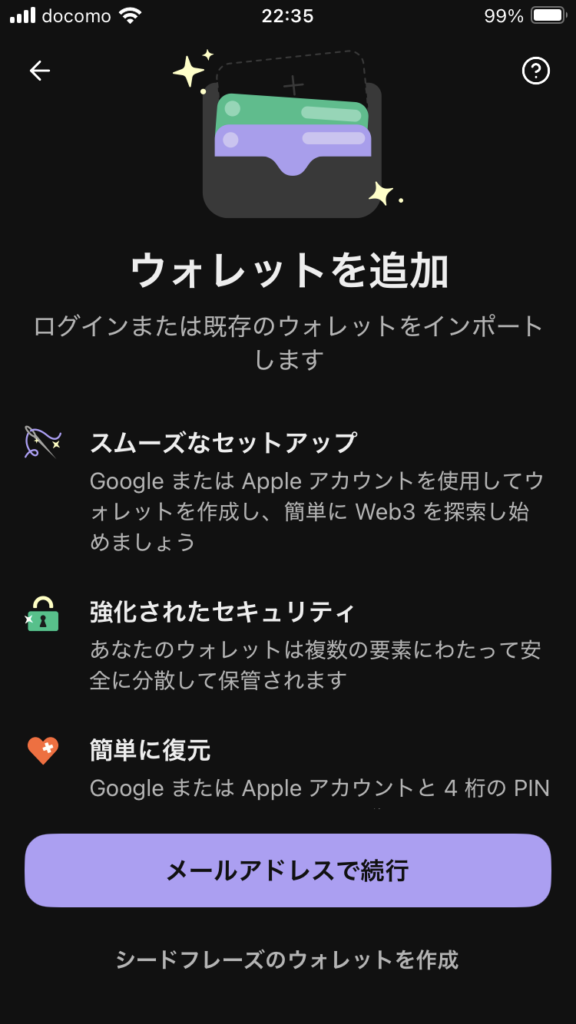 STEP3:「シードフレーズのウォレットを作成」を選択する