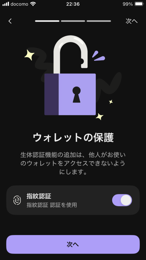 これは、スマホを他人に触られてもウォレットを開けないようにするための設定です。