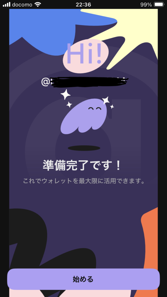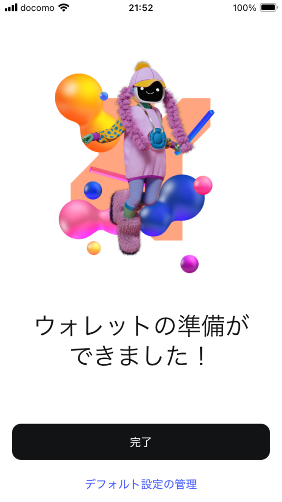「ウォレットの準備ができました!」と表示されれば完了です。