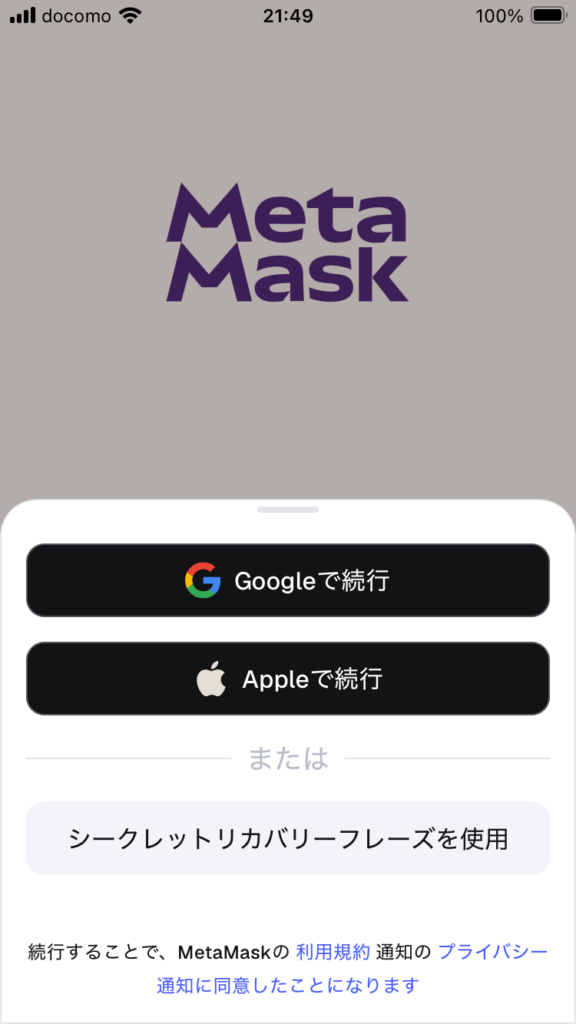 STEP3:「シークレットリカバリーフレーズを使用」を選択する